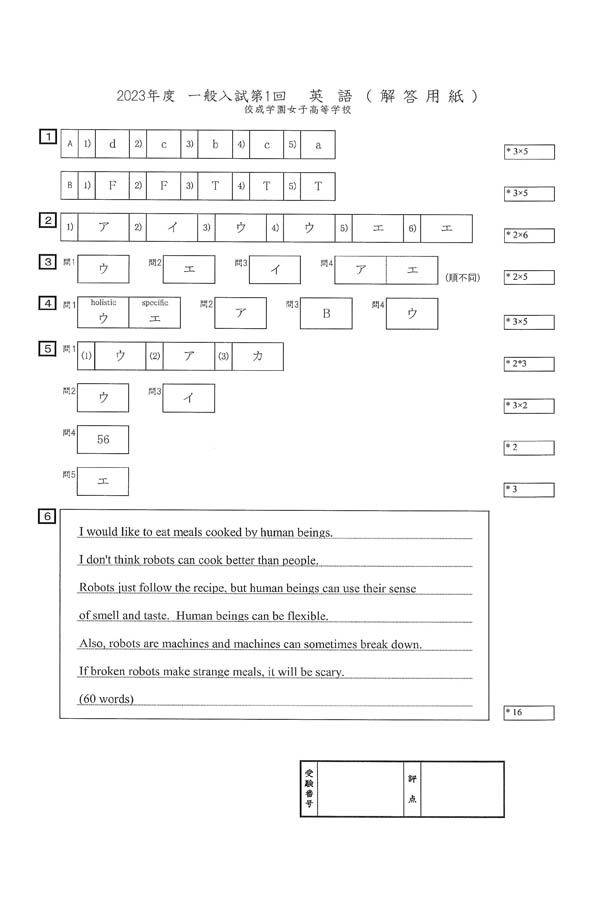 ■2023年度入試過去問題(英語 解答)