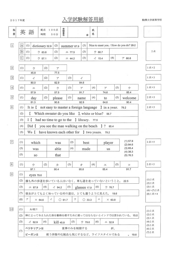 ■平成29年度入試過去問題(英語 解答)