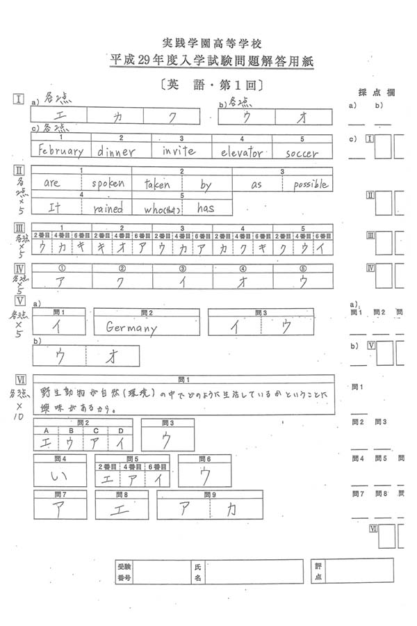 実践学園高等学校の入試過去問題[解答編]、資料(パンフレット)請求、入試(受験)、説明会などを掲載