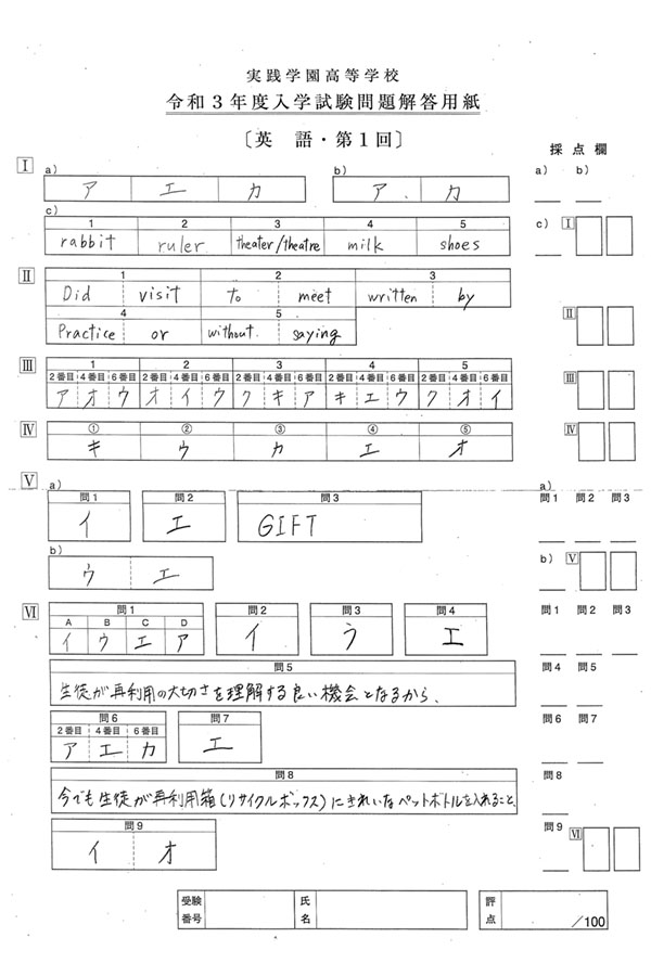 実践学園高等学校の入試過去問題[解答編]、資料(パンフレット)請求、入試(受験)、説明会などを掲載