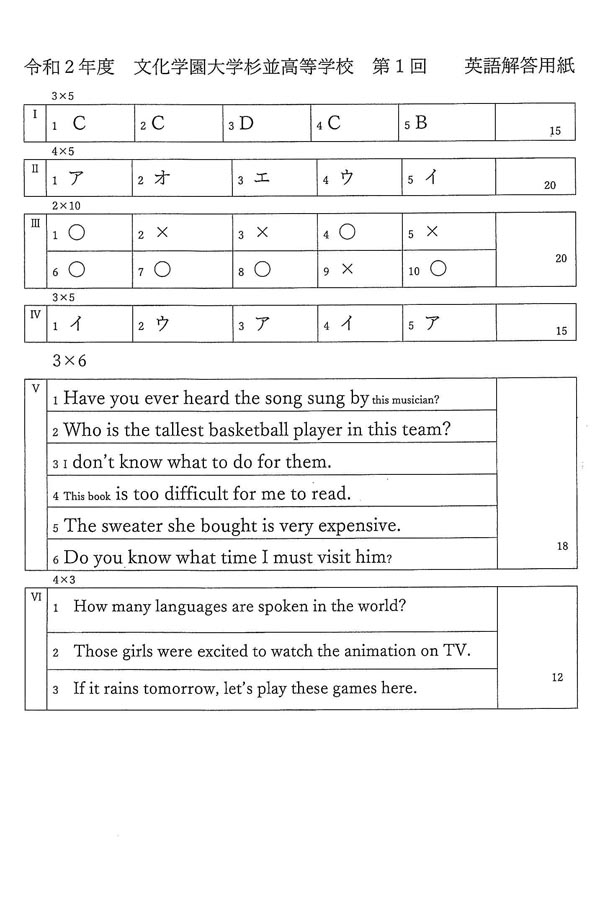 文化学園大学杉並高等学校の入試過去問題[解答編]、資料(パンフレット)請求、入試(受験)、説明会などを掲載