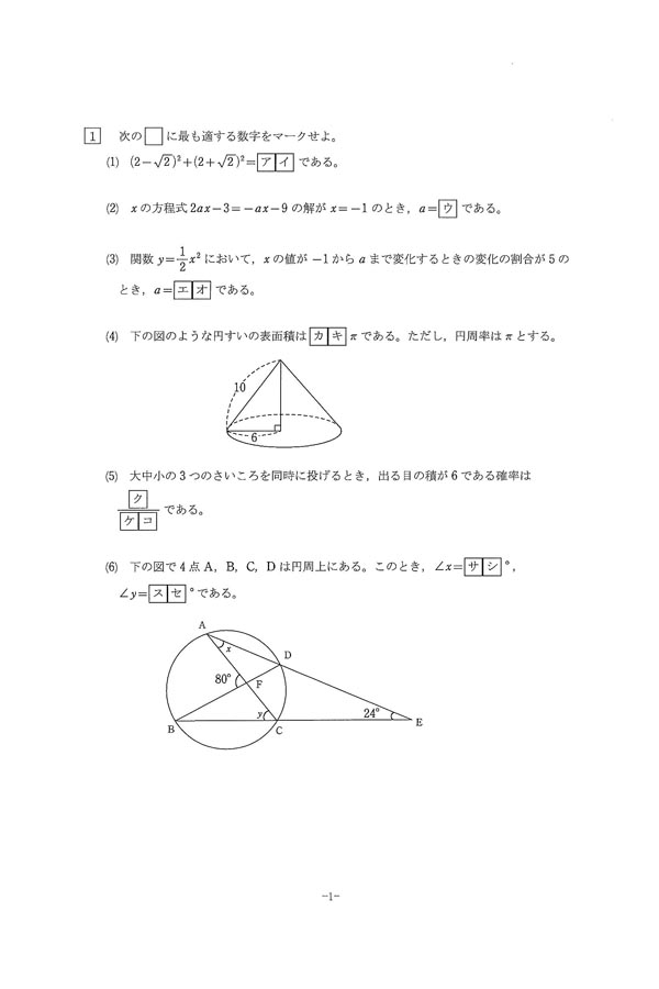 平成30年度入試過去問題 第1回: 数学(問題) 英語(問題)
