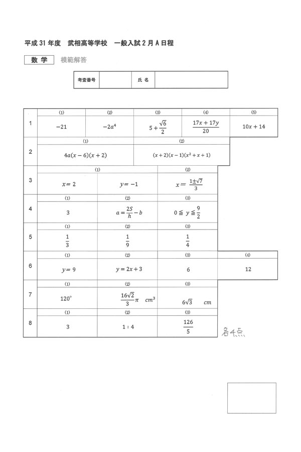 武相高等学校の入試過去問題[解答編]、資料(パンフレット)請求、入試(受験)、説明会などを掲載