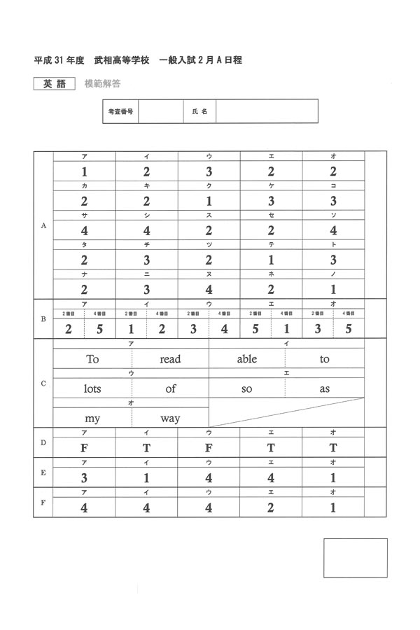 武相高等学校の入試過去問題[解答編]、資料(パンフレット)請求、入試(受験)、説明会などを掲載
