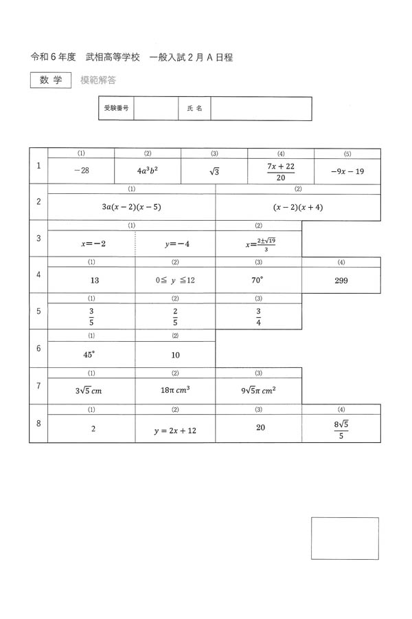 ■2024年度入試過去問題 (数学 解答)