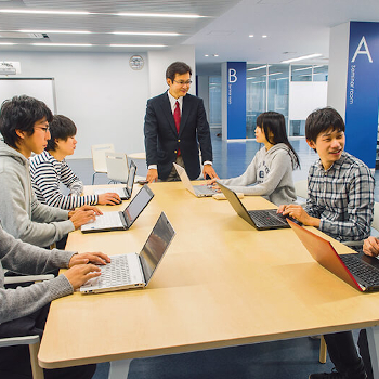 問題発見から解決にいたる過程・方法をチームで実践しながら学ぶ、全学生必修の金沢工業大学オリジナルの教育です。学生は5〜6人でチームをつくり、AIやIoT(Internet of Things)を活用しながら、何が社会で必要とされているのかチームで考え、創出したアイデアを具体化し、実験、検証、評価します。