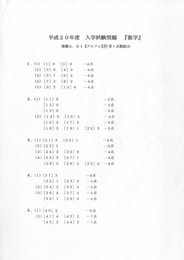 ■平成20年度入試過去問題 推薦A・B1 アルファ(数学 解答)