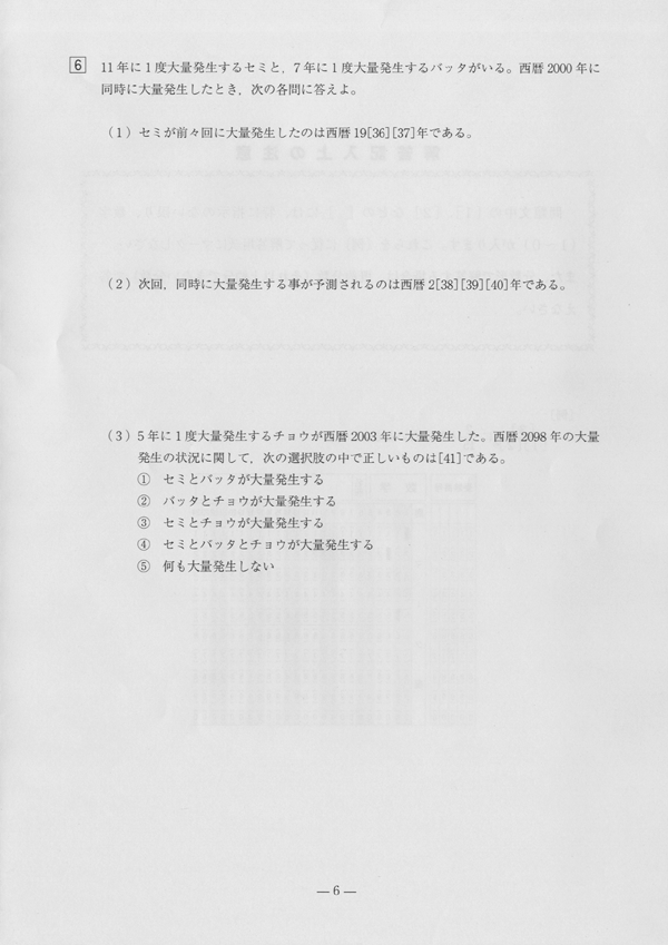 ■平成20年度入試過去問題 推薦A・B1 アドバンス食物(数学 問題)