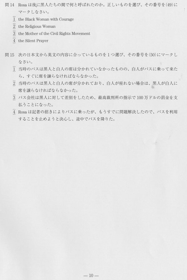 ■平成22年度入試過去問題 推薦A・B1 アドバンス/食物(英語 問題)