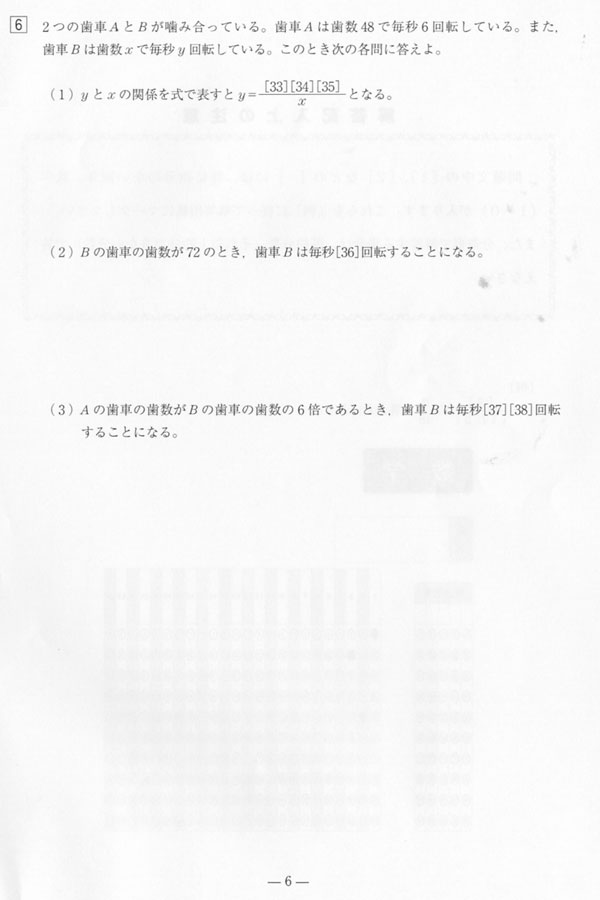 ■平成22年度入試過去問題 推薦B2 アドバンス/食物(数学 問題)