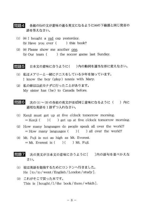 平成26年度入試過去問題: 数学(問題) 英語(問題)