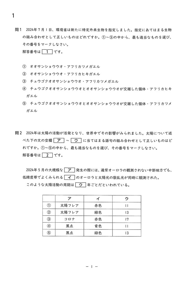 ■令和7年度入試過去問題(理科 問題)