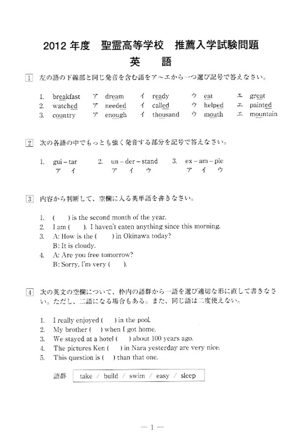 聖霊高等学校の入試過去問題[問題編]、資料(パンフレット)請求、入試(受験)、説明会などを掲載