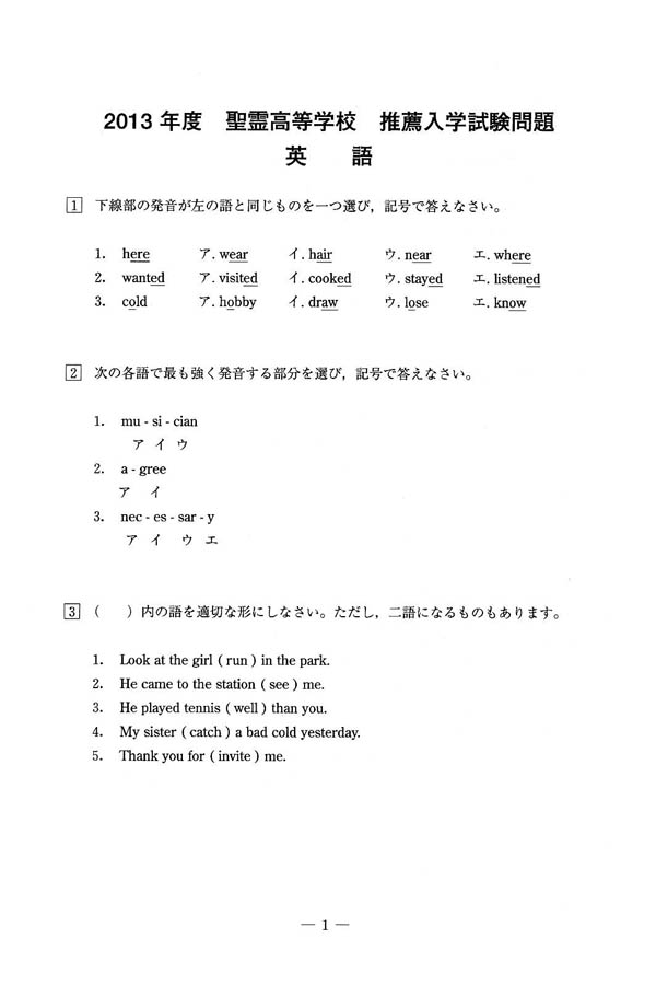 聖霊高等学校の入試過去問題[問題編]、資料(パンフレット)請求、入試(受験)、説明会などを掲載