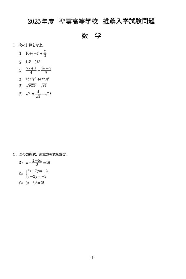 ■2025年度入試過去問題(推薦)(数学 問題)