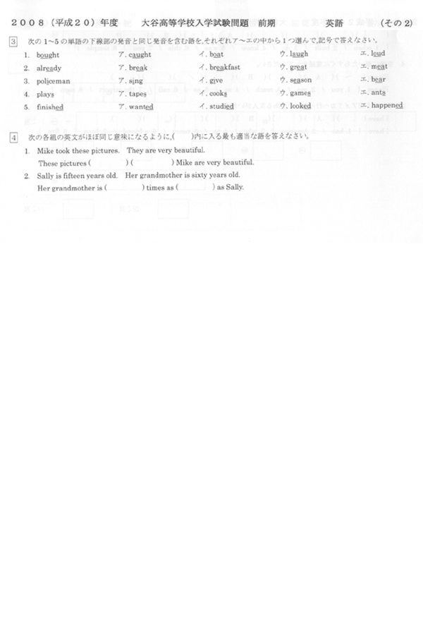 大谷高等学校の入試過去問題[問題編]、資料(パンフレット)請求、入試(受験)、説明会などを掲載