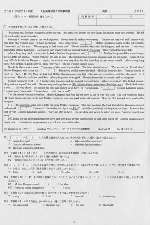 大谷高等学校の入試過去問題[問題編]、資料(パンフレット)請求、入試(受験)、説明会などを掲載