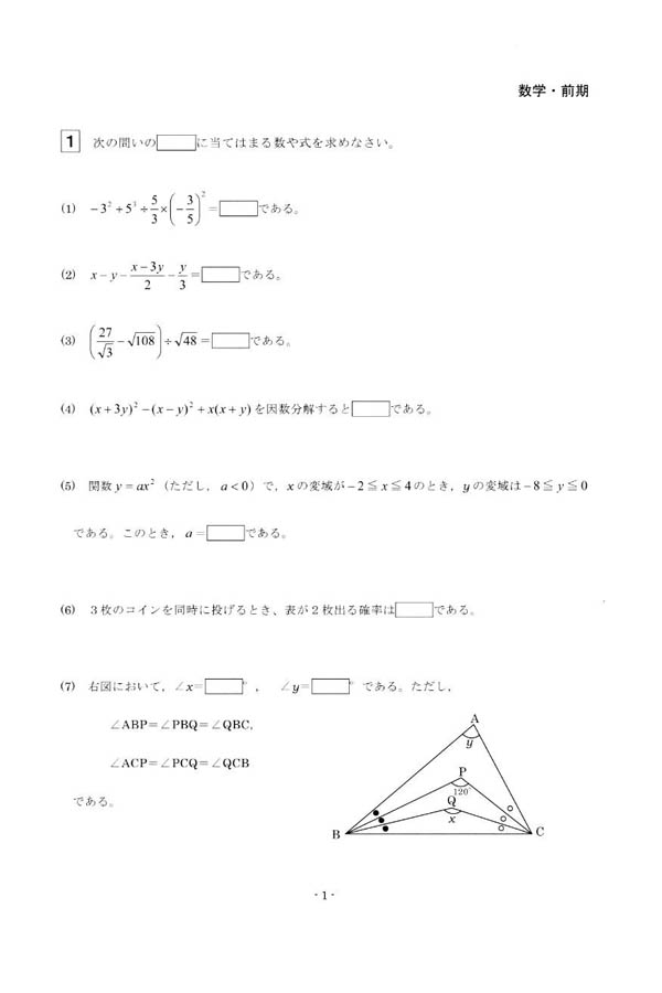 ■平成26年度入試過去問題(数学 問題)