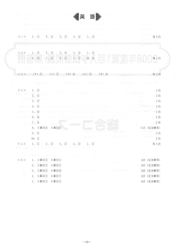 ■平成20年度入試過去問題 総合コース(英語 解答)