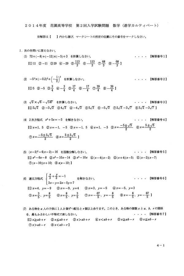 花園高等学校の入試過去問題[問題編]、資料(パンフレット)請求、入試(受験)、説明会などを掲載