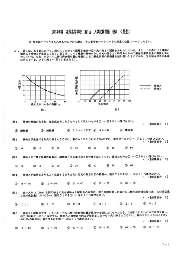 ■平成26年度入試過去問題 特進第1回(理科 問題)