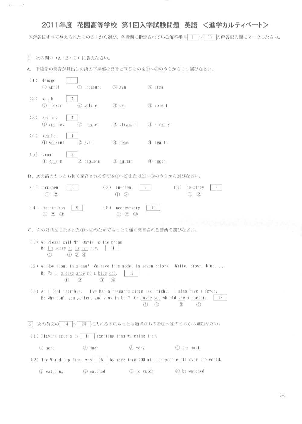 花園高等学校の入試過去問題[問題編]、資料(パンフレット)請求、入試(受験)、説明会などを掲載