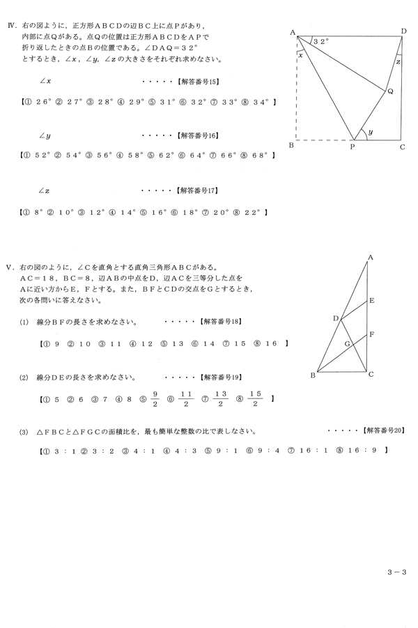 ■平成24年度入試過去問題 進学カルティベート(数学 問題)