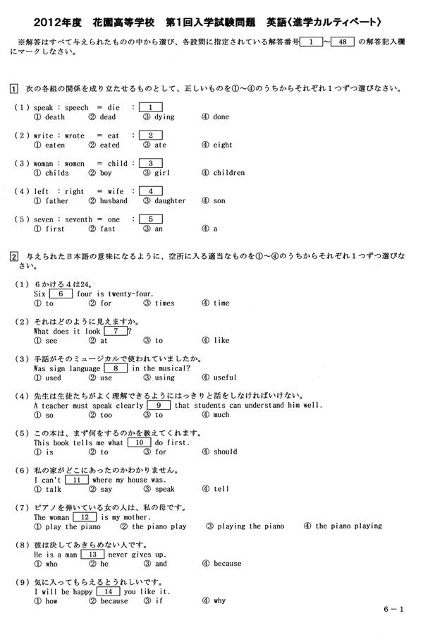 花園高等学校の入試過去問題[問題編]、資料(パンフレット)請求、入試(受験)、説明会などを掲載
