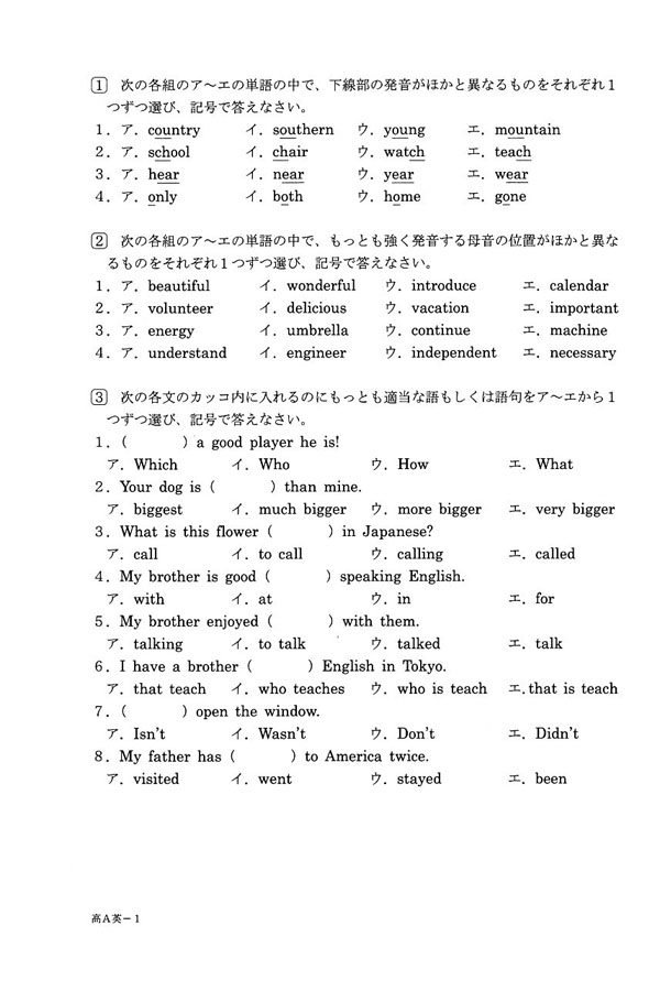 ■平成27年度入試過去問題 A日程(英語 問題)