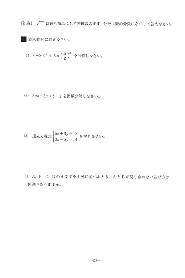 ■令和7年度入試過去問題(数学 問題)