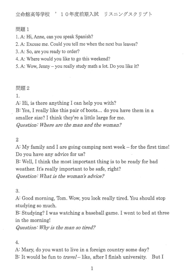 立命館高等学校の入試過去問題[問題編]、資料(パンフレット)請求、入試(受験)、説明会などを掲載