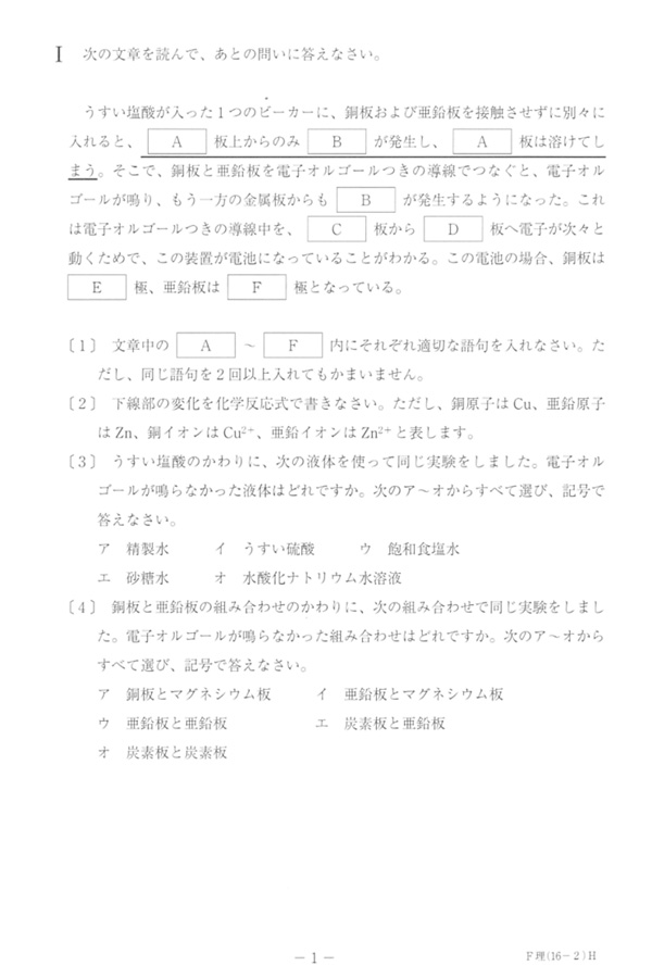 ■平成22年度入試過去問題 前期日程(理科 問題)