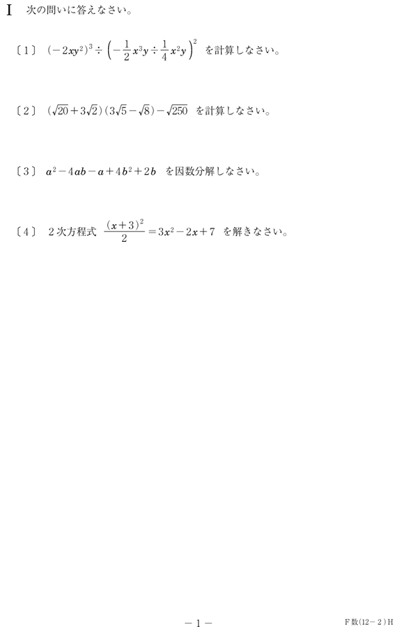平成24年度入試過去問題 前期: 数学(問題)