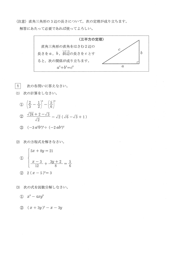 ■平成26年度入試過去問題(数学 問題)