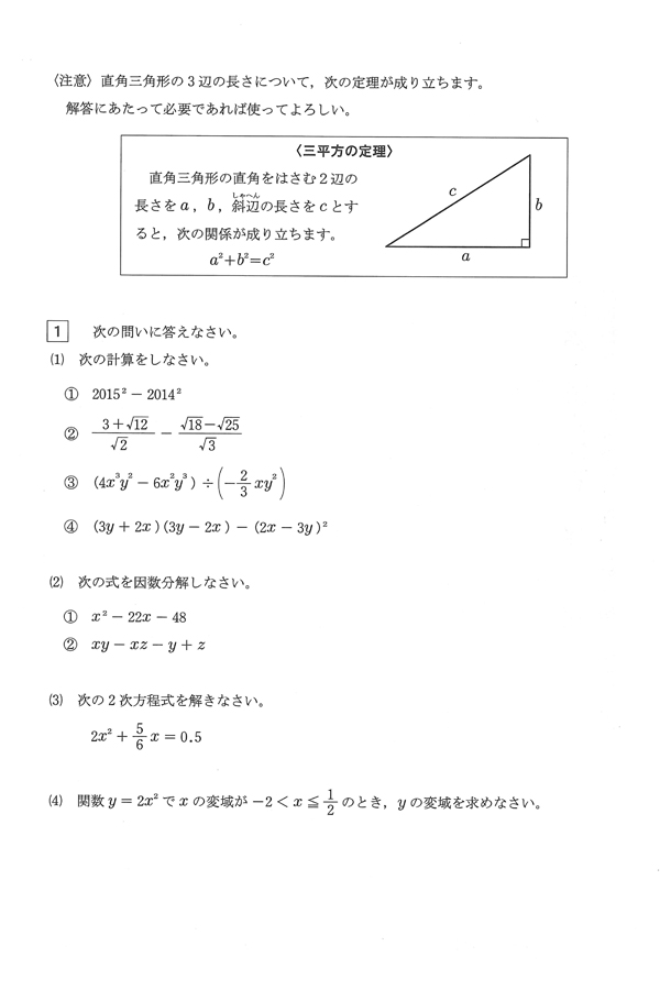 ■平成27年度入試過去問題(数学 問題)