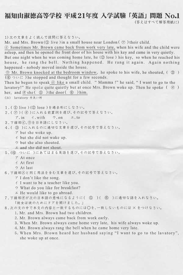 平成21年度入試過去問題 : 数学(問題) 英語(問題)