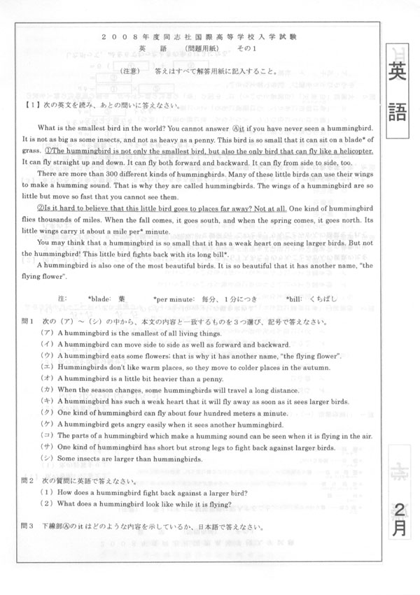 同志社国際高等学校の入試過去問題[問題編]、資料(パンフレット)請求、入試(受験)、説明会などを掲載