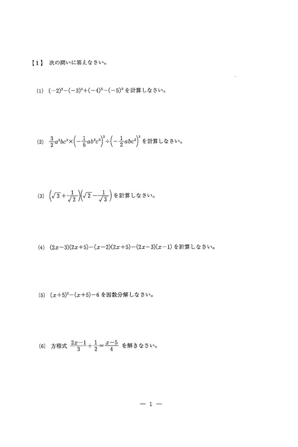 2025年度入試過去問題 : 数学(問題) 英語(問題) 理科(問題)