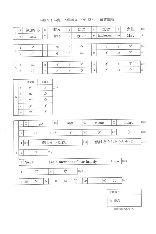 ■平成31年度入試過去問題(英語 解答)