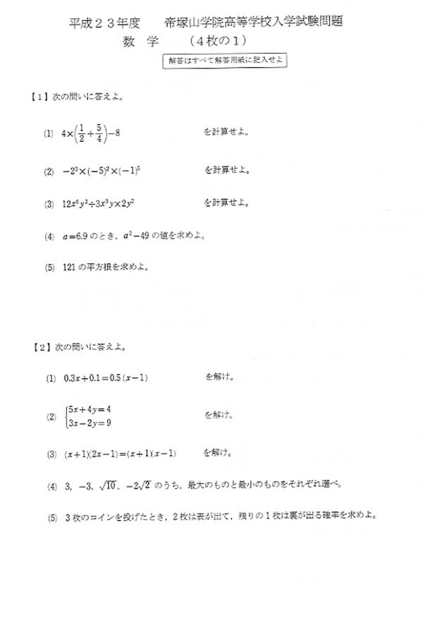 帝塚山学院高等学校の入試過去問題[問題編]、資料(パンフレット)請求、入試(受験)、説明会などを掲載