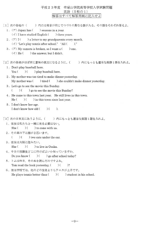 ■平成23年度入試過去問題(英語 問題)