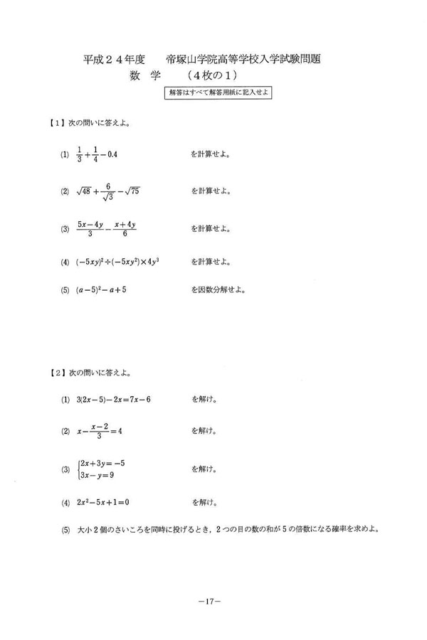帝塚山学院高等学校の入試過去問題[問題編]、資料(パンフレット)請求、入試(受験)、説明会などを掲載