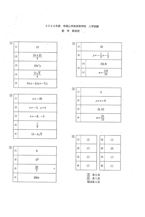 ■2024年度入試過去問題(数学 解答)