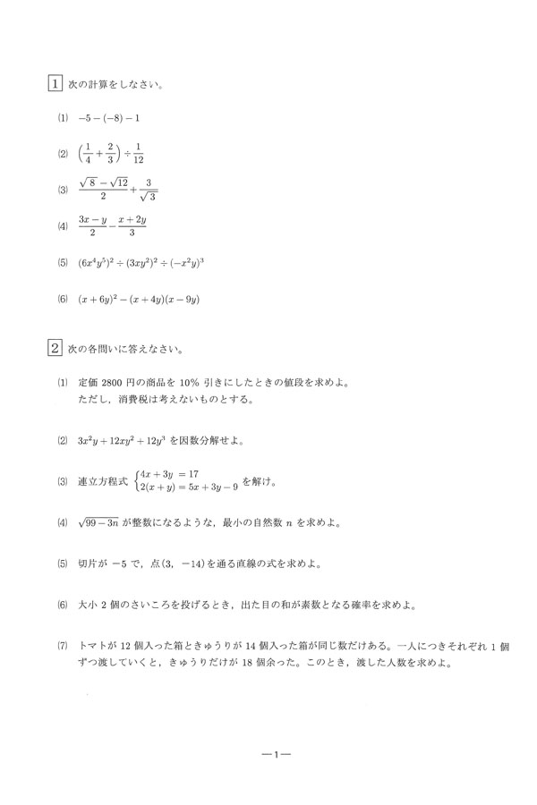 2025年度入試過去問題: 数学(問題) 英語(問題)