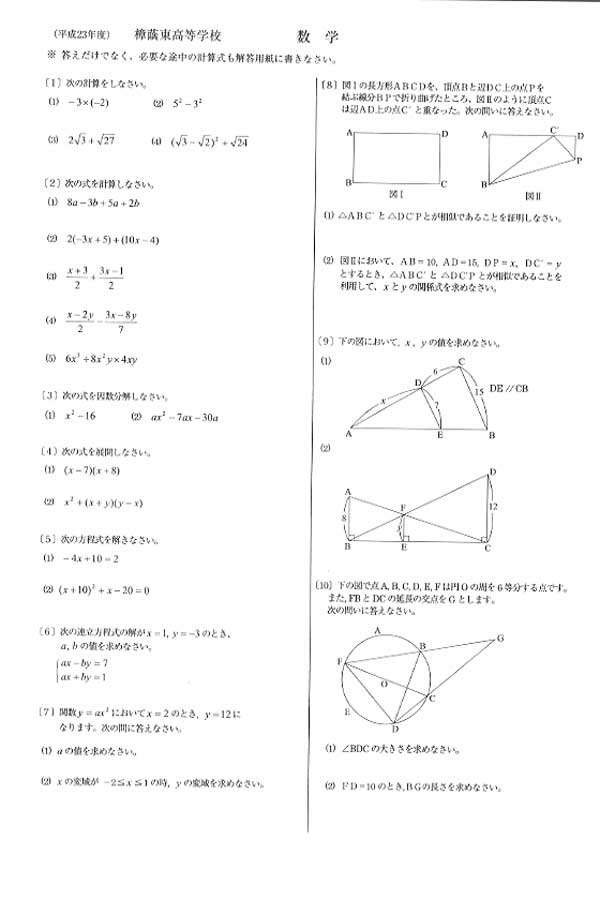 ■平成23年度入試過去問題 衛生看護科(数学 問題)