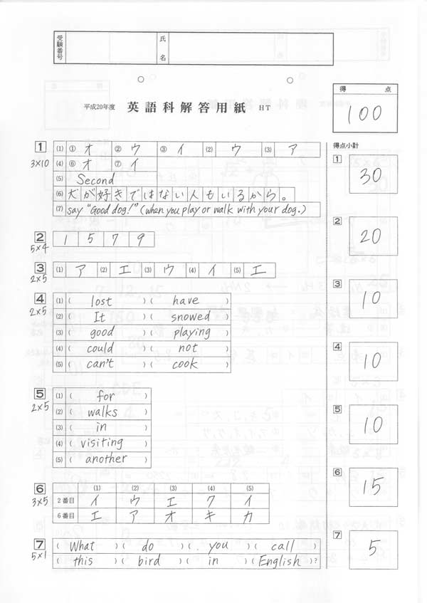 ■平成20年度入試過去問題(英語 解答)