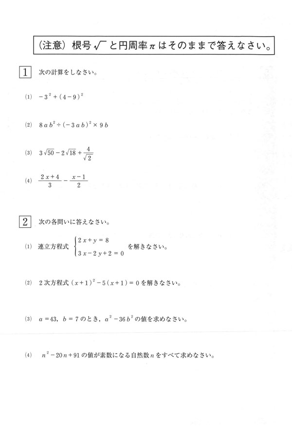 令和7年度入試過去問題: 数学(問題) 英語(問題)