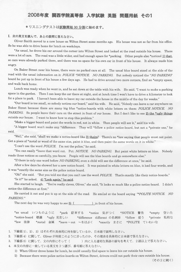 ■平成20年度入試過去問題(英語 問題)