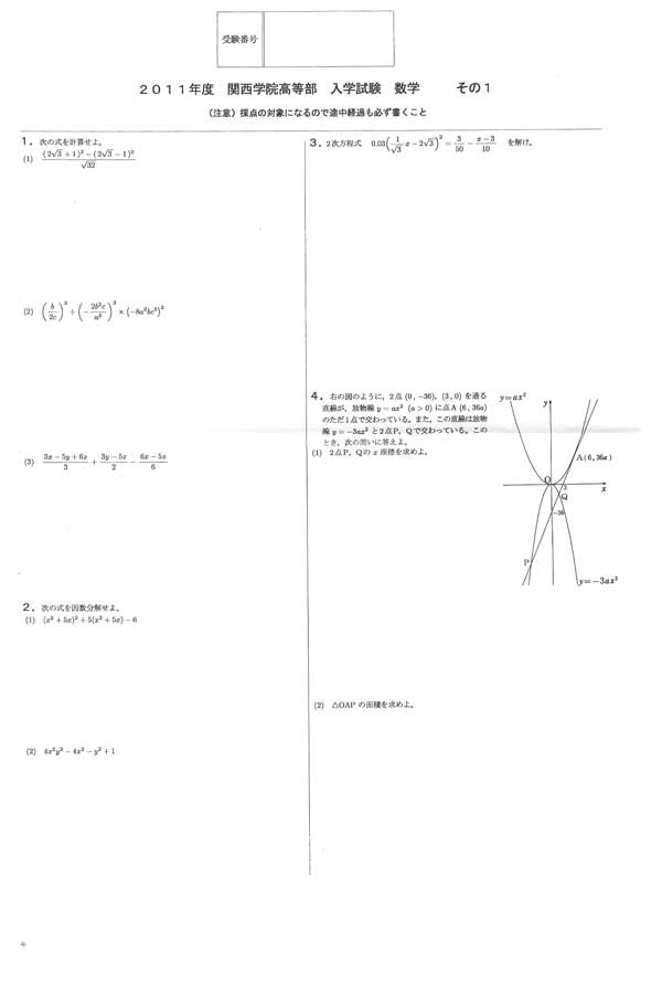 ■平成23年度入試過去問題(数学 問題)