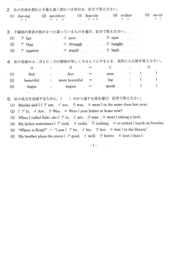 平成23年度入試過去問題: 数学(問題) 英語(問題)